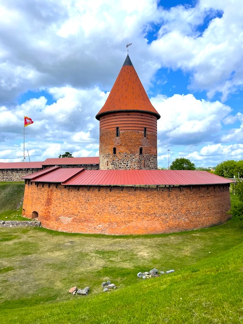 14 Uhr Nach dem Essen läufst du zur Burg Kaunas, einem mittelalterlichen Wahrzeichen, das direkt an der Flussmündung liegt. Die Burg wirkt ein bisschen wie aus einem Ritterfilm: kompakt, mit einem Turm und dicken Mauern. Drinnen findest du kleine Ausstellungen zur Geschichte der Burg und der Stadt, und es macht Spaß, auf die Mauern zu steigen und den Fluss aus der Höhe zu beobachten.
