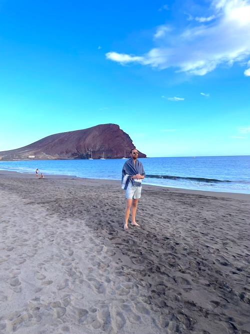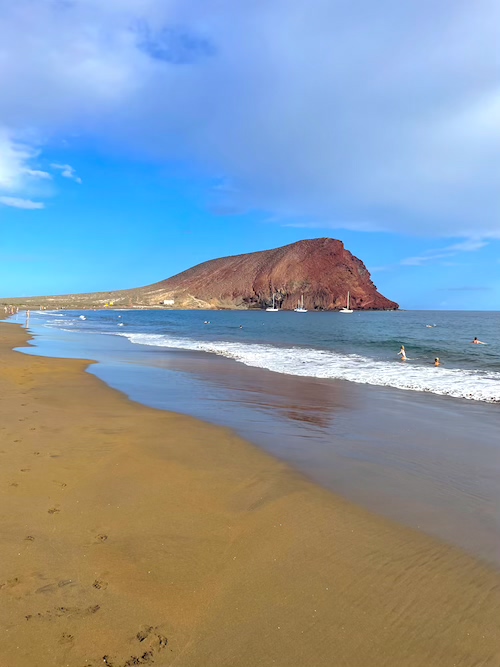 Die Playa de la Tejita liegt in einer geschützten Naturlandschaft im Süden Teneriffas und bietet einen freien Blick auf den markanten Montaña Roja, einen alten Vulkankegel. Der Strand ist weitläufig, naturbelassen und deutlich ruhiger als viele andere Strände der Insel.